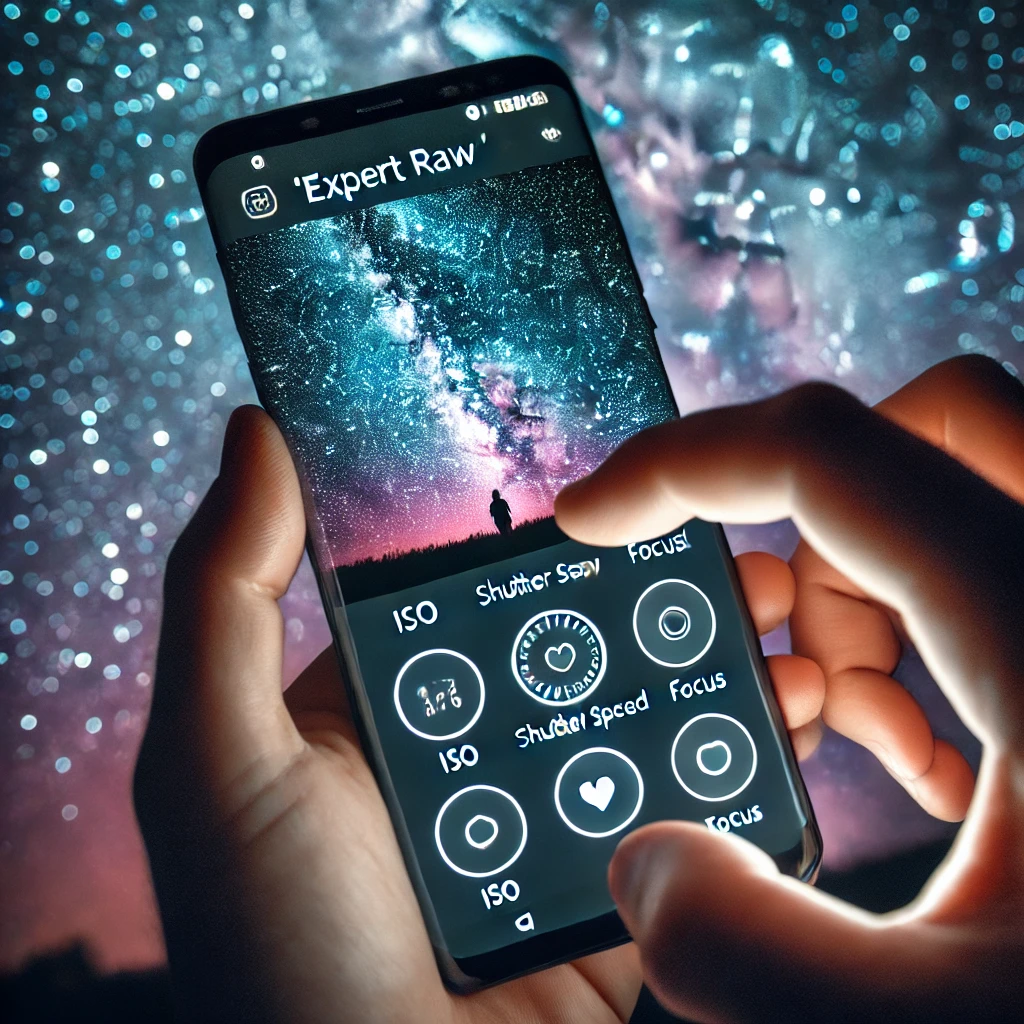 'Expert RAW' 모드에서 천체 사진을 찍기 위한 설정이 따로 제공됩니다. 이 모드를 활성화하면, 카메라가 천체의 움직임과 어두운 하늘을 감지하여 최적의 설정을 자동으로 추천해주기도 합니다. 하지만 완전히 자동에 의존하기보다는 수동 조절을 통해 자신만의 세부 설정을 찾아보는 것이 좋습니다.