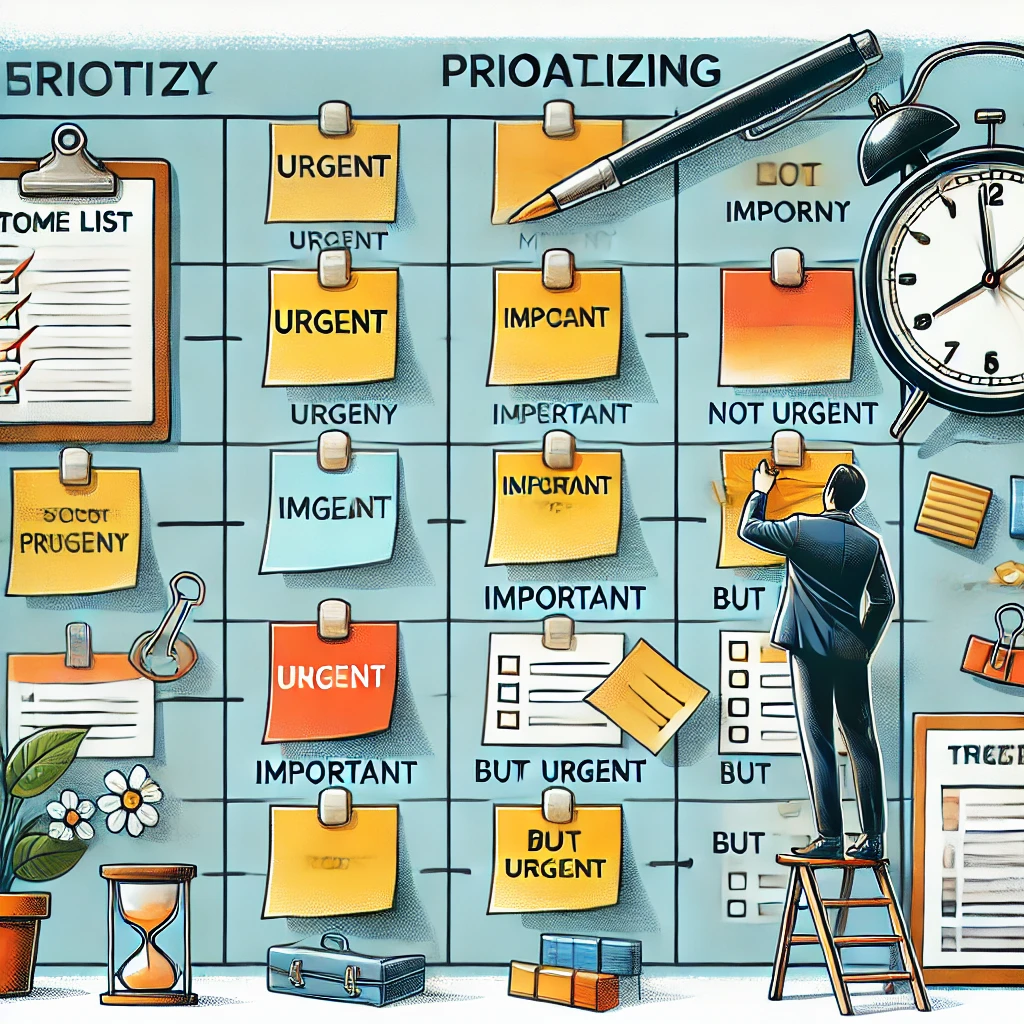 우선순위를 정할 때는 '긴급하고 중요한 일'과 '중요하지만 급하지 않은 일', '긴급하지만 중요하지 않은 일', '긴급하지도 중요하지도 않은 일'로 구분해보세요. 이 방법은 게으름을 극복하고 시간 관리를 효율적으로 할 수 있는 강력한 도구입니다.