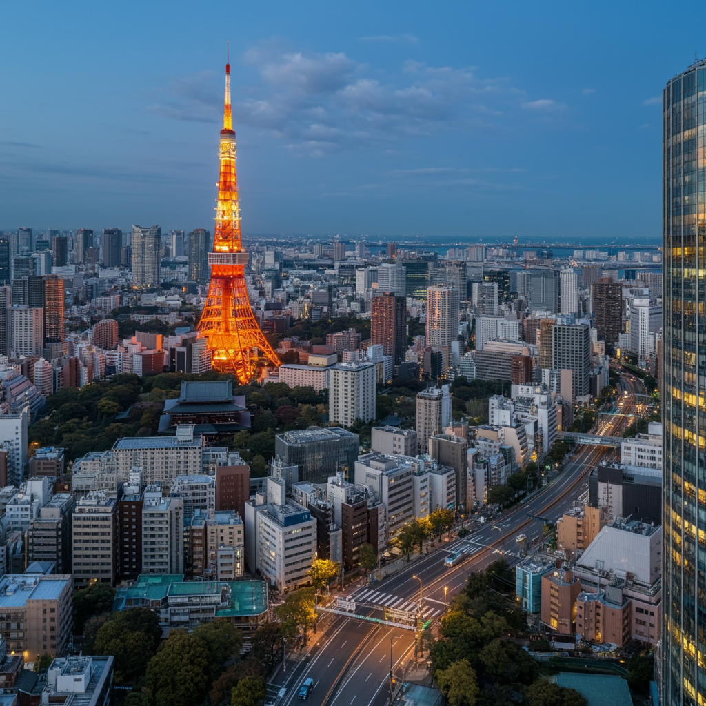 • 도쿄타워: 파리의 에펠탑을 본떠 만든 도쿄타워는 도쿄의 대표적인 랜드마크입니다. 전망대에서는 도쿄의 전경을 한눈에 내려다볼 수 있으며, 특히 야경이 아름답습니다.