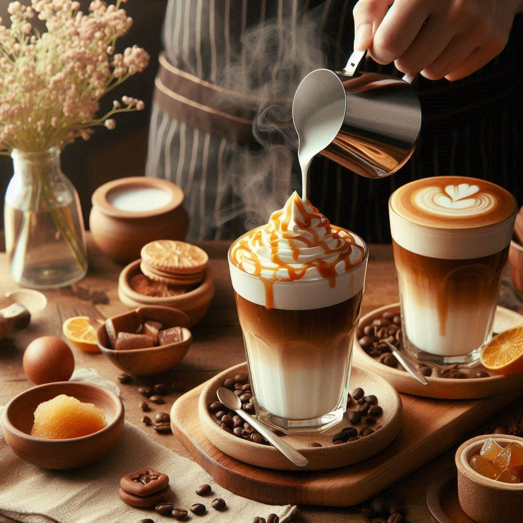 - 카라멜 마키아토: 현대적인 변형으로, 바닐라 시럽과 카라멜 소스가 추가된 달콤한 버전입니다. 우유의 양이 더 많아지고, 일반적으로 아이스 또는 핫으로 즐길 수 있습니다. 달콤한 맛을 선호하는 사람들에게 인기가 많습니다.