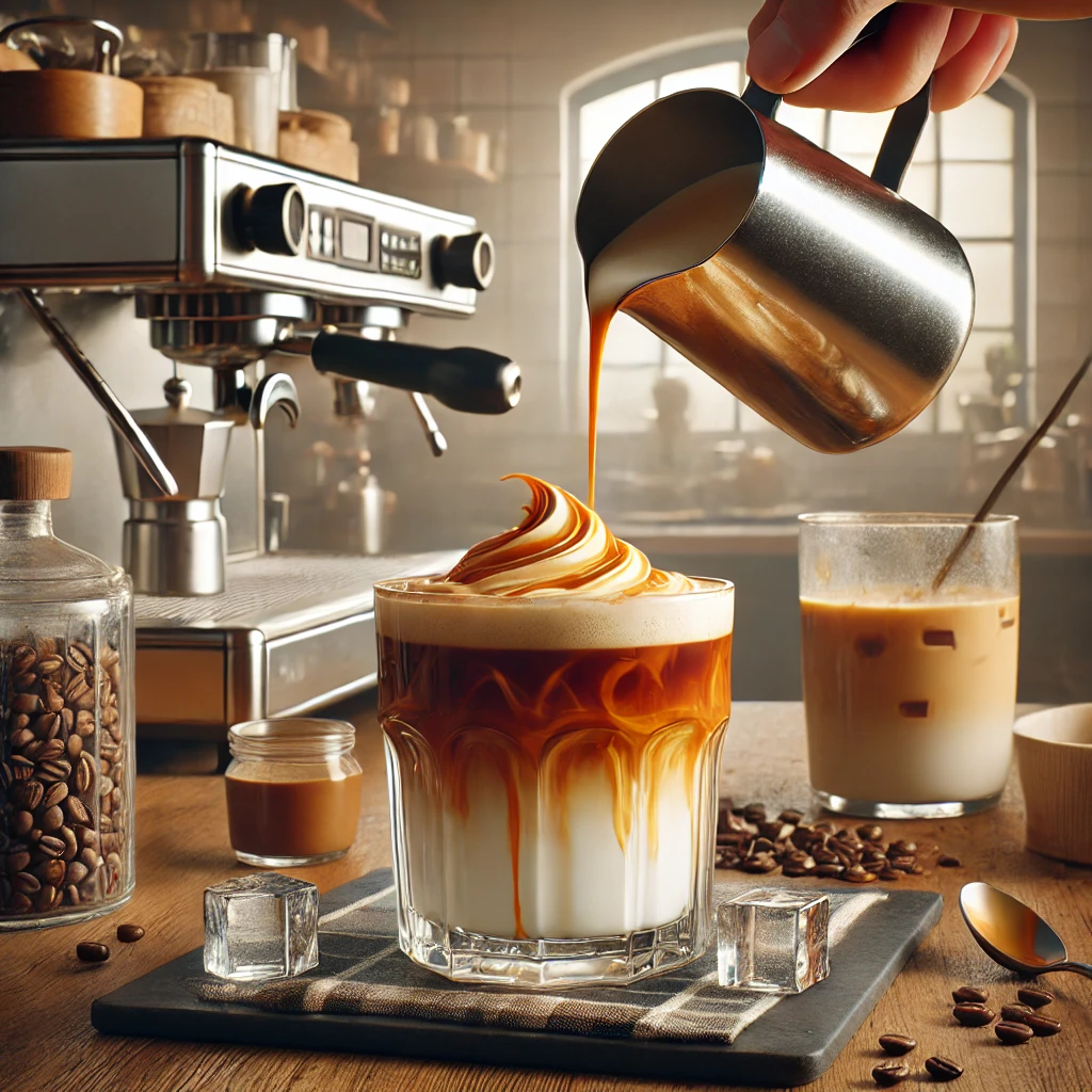 - 에스프레소 샷 추가: 차가운 우유 위에 에스프레소 샷을 천천히 부어줍니다. 이때 에스프레소가 우유와 자연스럽게 층을 이루도록 주의합니다.