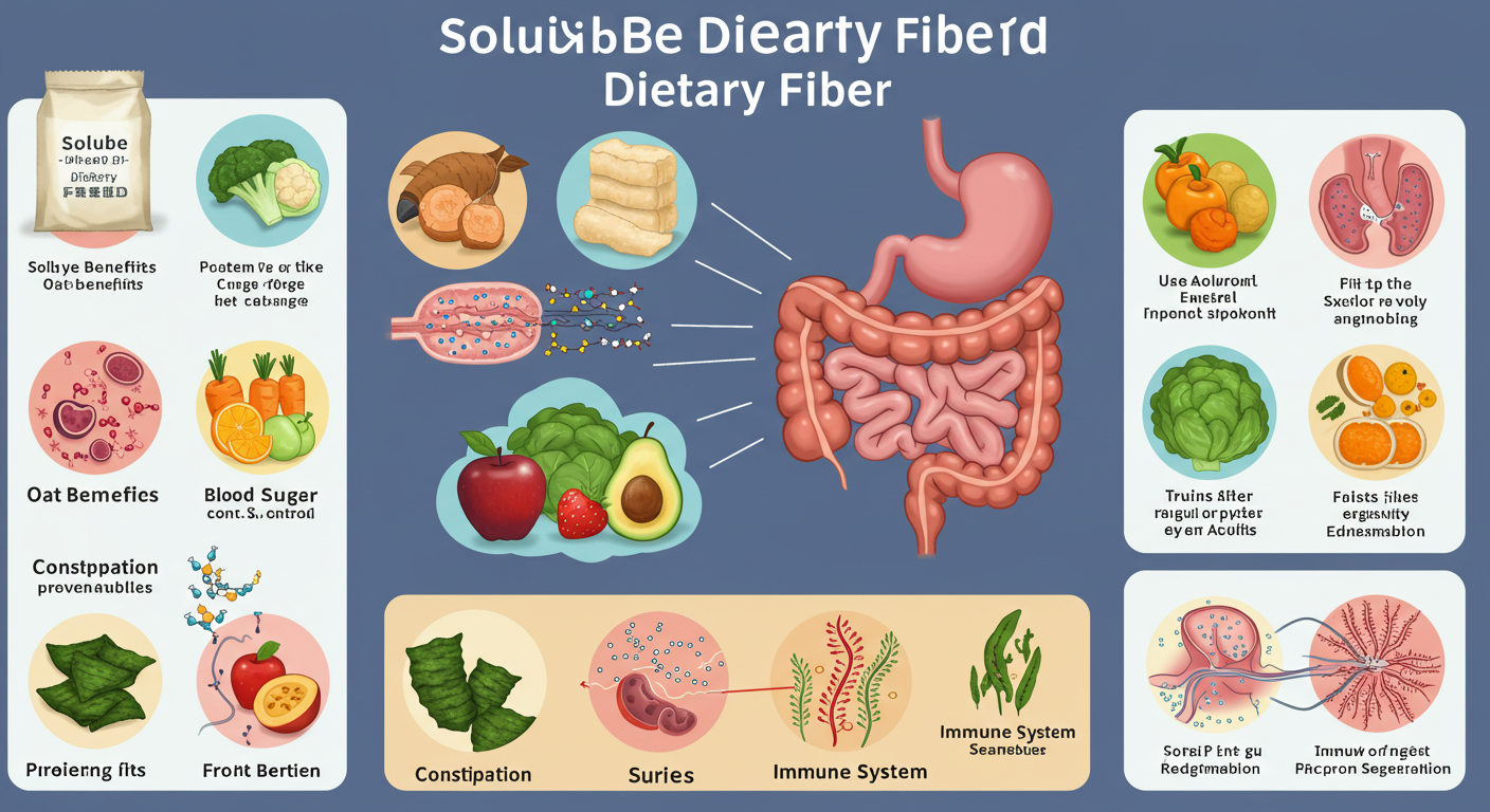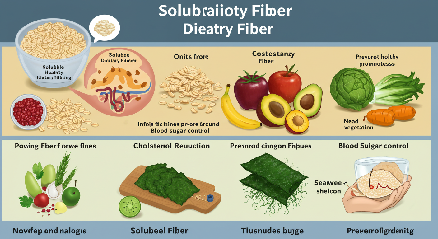 대표적인 수용성 식이섬유에는 펙틴, 베타글루칸, 이눌린, 구아검, 프락토올리고당 등이 있으며, 이들은 과일, 채소, 귀리, 보리, 콩류, 해조류 등 자연식품에 풍부하게 포함되어 있습니다. 이러한 식이섬유는 단순히 장 기능을 향상시키는 것을 넘어, 심혈관 건강과 대사 건강에 직접적인 영향을 미치는 중요한 요소입니다. 수용성 식이섬유는 건강한 삶의 기초를 다지는 데 중요한 역할을 하며, 그 기능은 다양한 과학적 연구에서도 꾸준히 입증되고 있습니다.