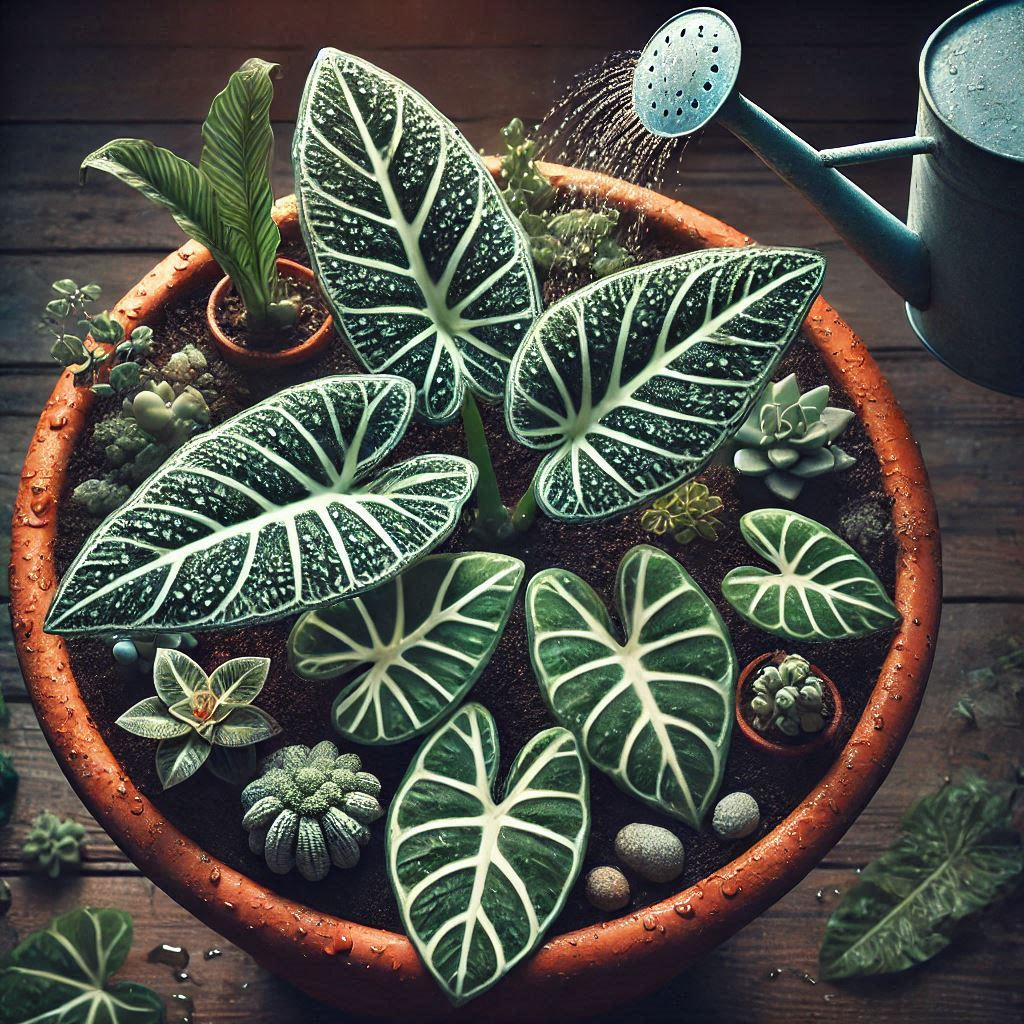 알로카시아는 물 관리를 잘못하면 뿌리가 썩거나 과도한 건조로 인해 잎이 시들어질 수 있습니다. 흙이 마른 상태일 때 물을 주는 것이 중요하며, 물을 줄 때는 화분 아래로 물이 충분히 배출되도록 해야 합니다. 여름철에는 흙이 빨리 마르므로 물 주기를 자주 해야 하고, 겨울에는 물 주는 횟수를 줄이는 것이 좋습니다.