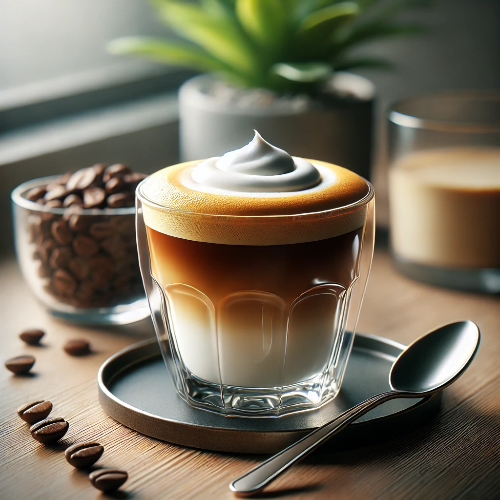 마끼아또는 에스프레소에 약간의 우유 거품을 얹은 음료입니다. 기본 에스프레소의 진한 맛에 부드러운 우유 거품이 더해져, 더 풍부하고 부드러운 질감을 제공합니다. 마끼아또는 '얼룩지다'라는 의미로, 커피 위에 우유 거품이 얼룩처럼 얹어진 모습을 묘사한 이름입니다.