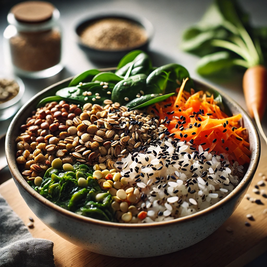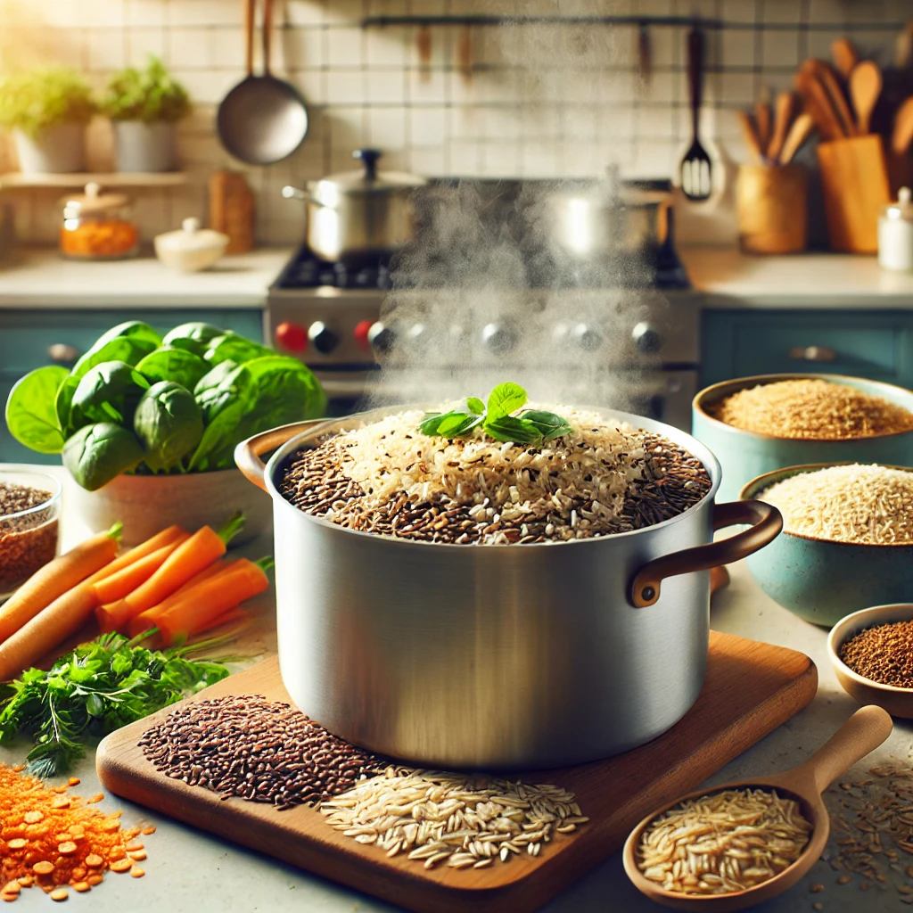 렌틸콩은 식이섬유와 단백질이 풍부하고, 귀리와 현미는 복합 탄수화물과 비타민 B군을 제공합니다. 백미는 잡곡의 거친 식감을 부드럽게 해주며, 밥의 전체적인 균형을 맞추는 역할을 합니다.