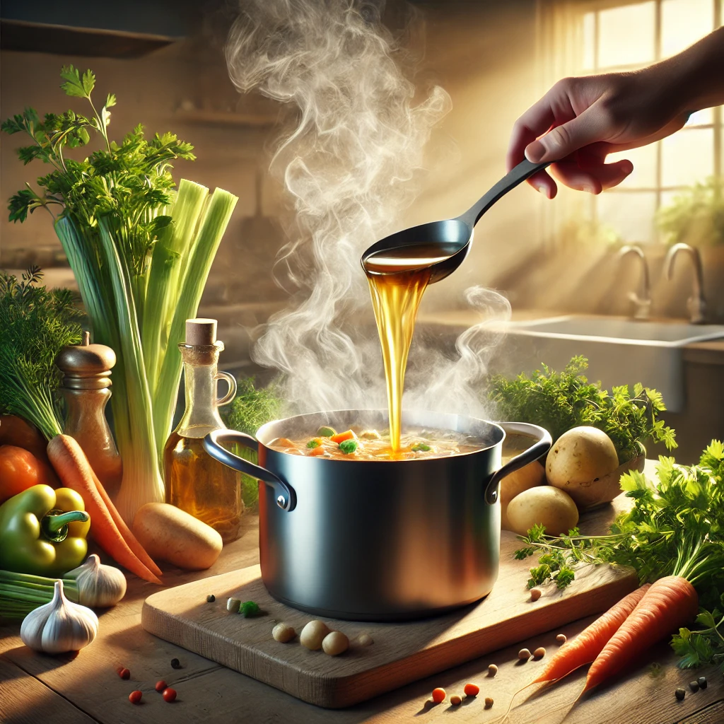 국물 요리는 치킨스톡을 가장 많이 사용하는 요리 중 하나입니다. 육수가 기본이 되는 국물 요리에서는 치킨스톡이 전체 맛을 좌우하기 때문에, 맛의 깊이를 더해주는 역할을 합니다.