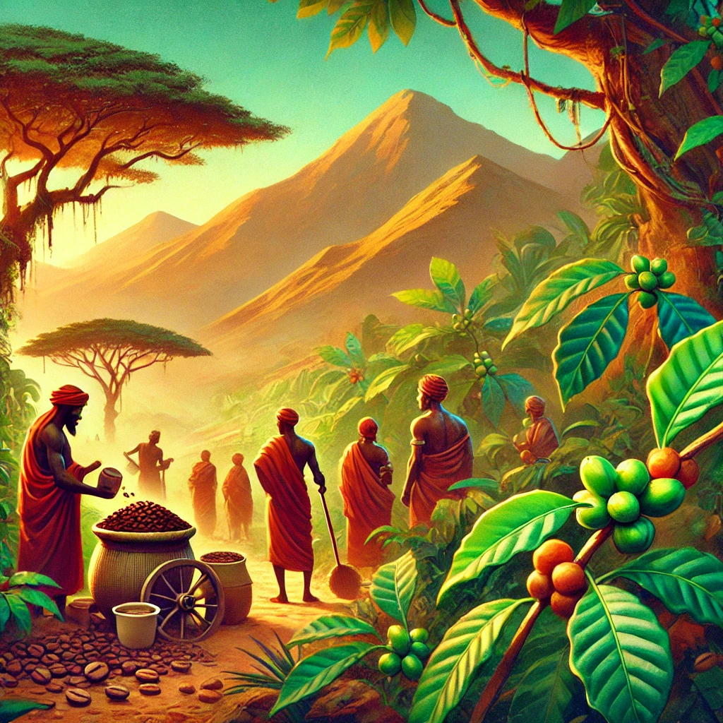 커피의 역사는 에티오피아에서 시작된다고 알려져 있습니다. 커피에 관한 가장 유명한 전설은 염소지기 칼디(Kaldi)에 관한 이야기입니다. 칼디는 자신의 염소들이 어떤 나무의 열매를 먹고 활기차게 뛰어다니는 것을 보고 그 열매를 맛보았으며, 이 열매가 바로 커피의 기원이 되었다고 전해집니다. 이후 이 열매는 지역 사람들에게 알려졌고, 약재나 간단한 기력 보강제로 사용되었습니다.