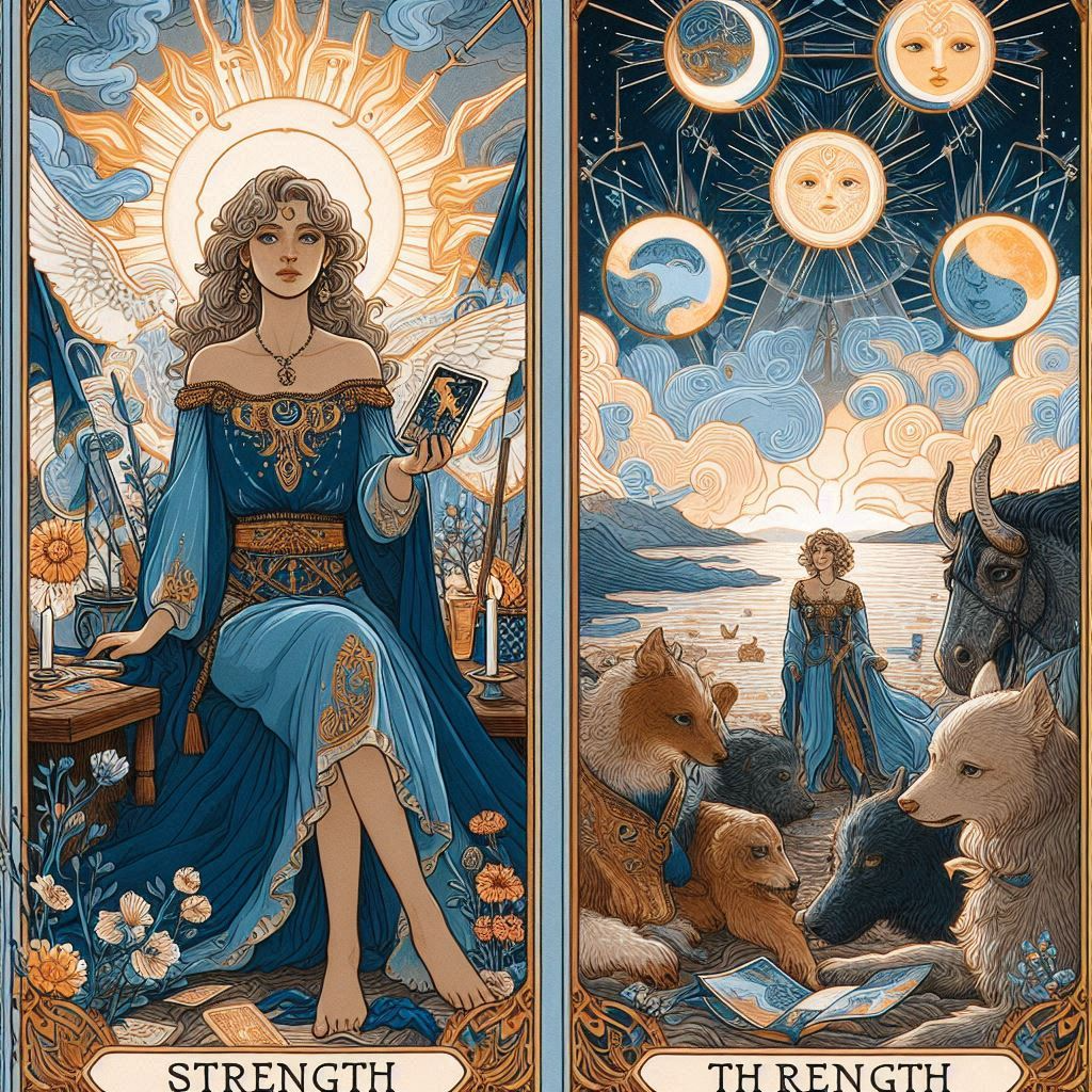 - 힘 + 컵의 10: 감정적 안정과 조화를 통해 행복한 관계를 유지할 수 있음을 나타냅니다.