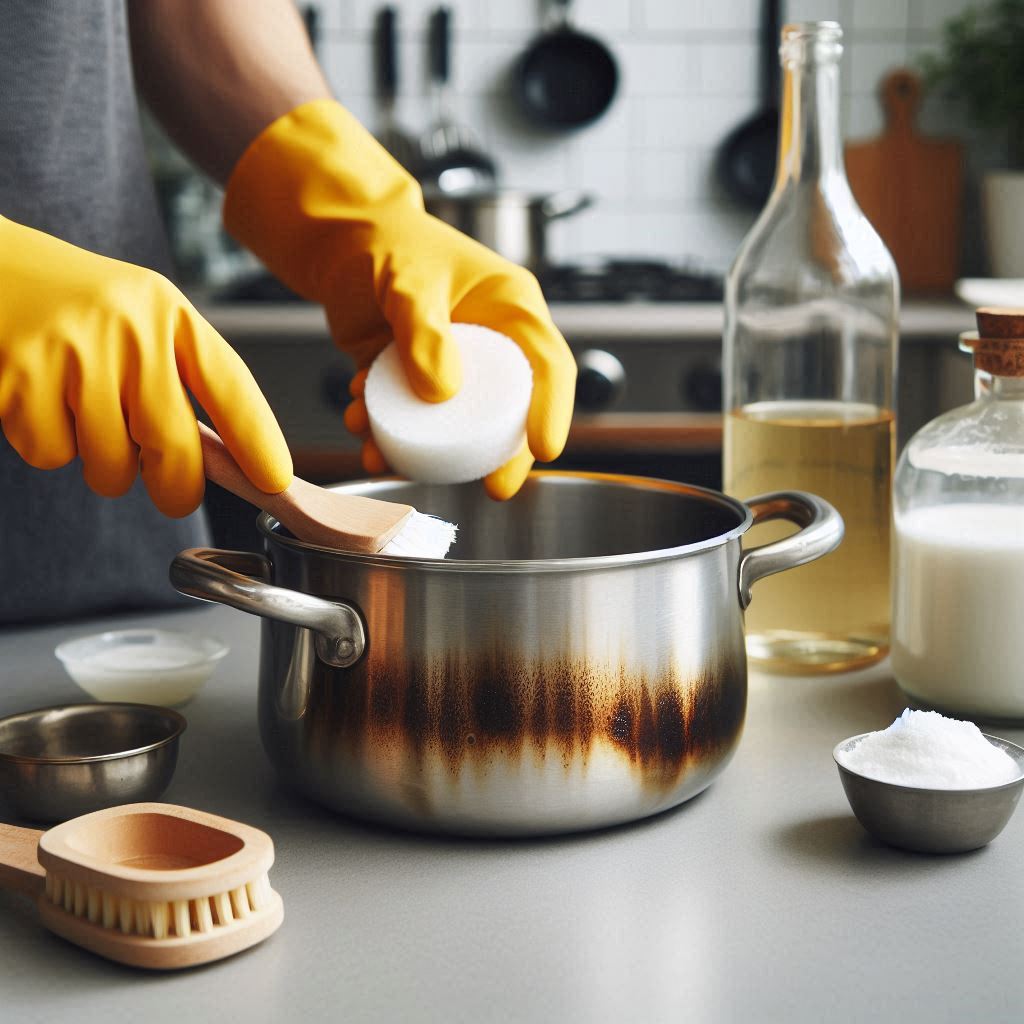 베이킹소다는 주방 청소의 만능 해결사로 불릴 만큼 다양한 용도로 활용됩니다. 특히 탄 자국 제거에 있어서도 탁월한 효과를 보입니다. 냄비에 물을 넣고 베이킹소다를 넉넉하게 뿌려 수 시간 동안 불려 둡니다. 이후 부드러운 철수세미나 스펀지를 이용해 문지르면 탄 자국이 쉽게 벗겨집니다.