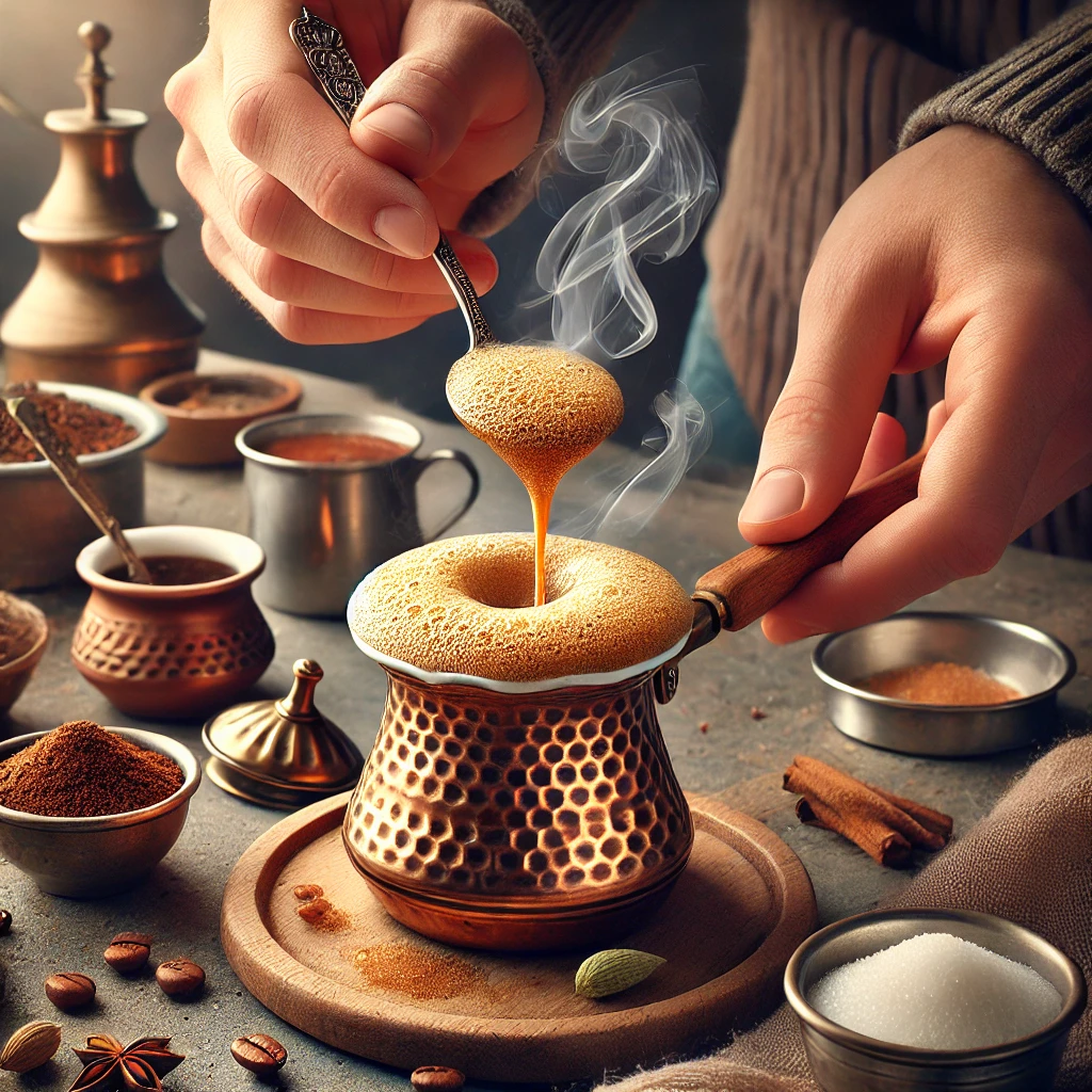 터키 커피의 거품은 그 맛의 핵심 중 하나입니다. 커피가 끓어오를 때 생기는 거품을 잔에 담는 과정을 통해 터키 커피 특유의 부드러운 질감을 느낄 수 있습니다. 따라서 커피가 끓어오를 때는 불을 세게 하지 말고 천천히 끓이는 것이 중요합니다.