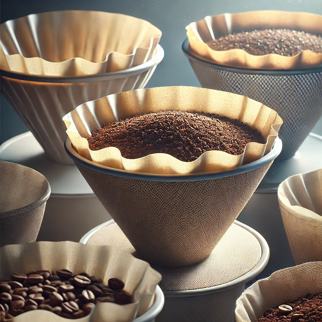 - 종이 필터: 가장 흔히 사용되는 필터로, 미세한 커피 찌꺼기와 오일을 걸러내 깔끔한 맛을 내는 것이 특징입니다. 종이 필터는 보통 일회용이기 때문에 위생적이며, 부드럽고 클린한 커피를 추출하는 데 적합합니다. 종이 필터는 다양한 두께와 재질로 나뉘며, 커피의 맛에 미치는 영향도 조금씩 다릅니다. 예를 들어, 브라운 종이 필터는 화학처리가 되지 않아 자연스러운 맛을 제공하며, 흰색 필터는 더 깨끗한 맛을 원하는 사람들에게 인기가 있습니다.